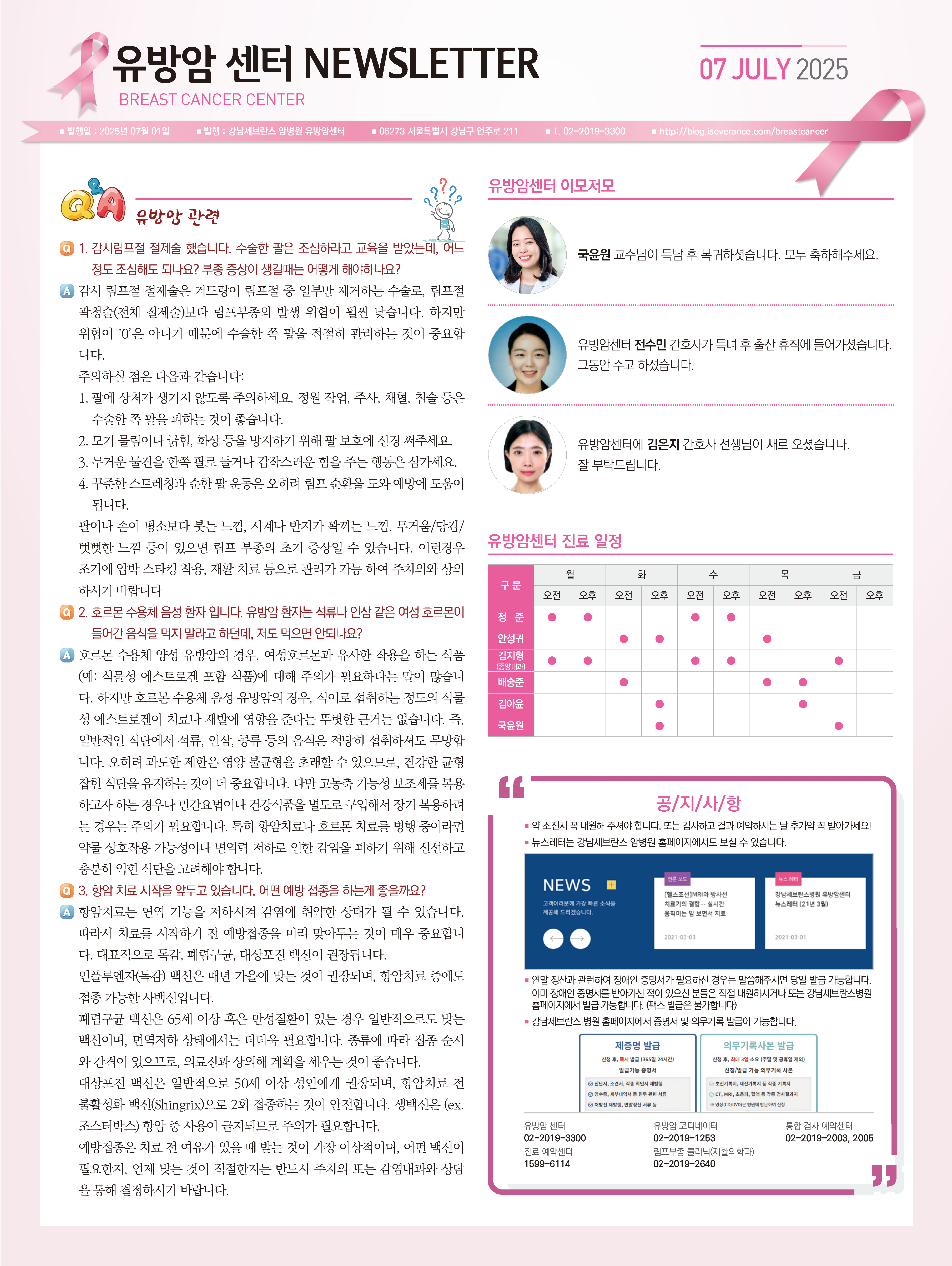뉴스레터 강남세브란스암병원 유방암센터 뉴스레터 (2025년 7월) 관리자 2025-07-01 조회수 182 목록 이전글강남세브란스암병원 뉴스레터 (2025년 4월) 다음글강남세브란스암병원 유방암센터 뉴스레터 (2025년 10월)